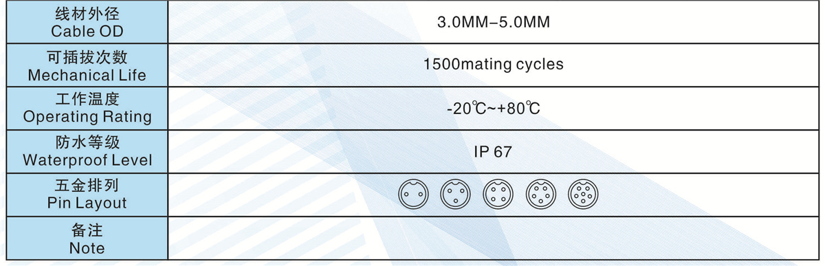 線材匹配(Wire  Gague):<=1.5MM2       <=0.75MM2       <=0.5MM2      <=0.3MM2     <=0.2MM2