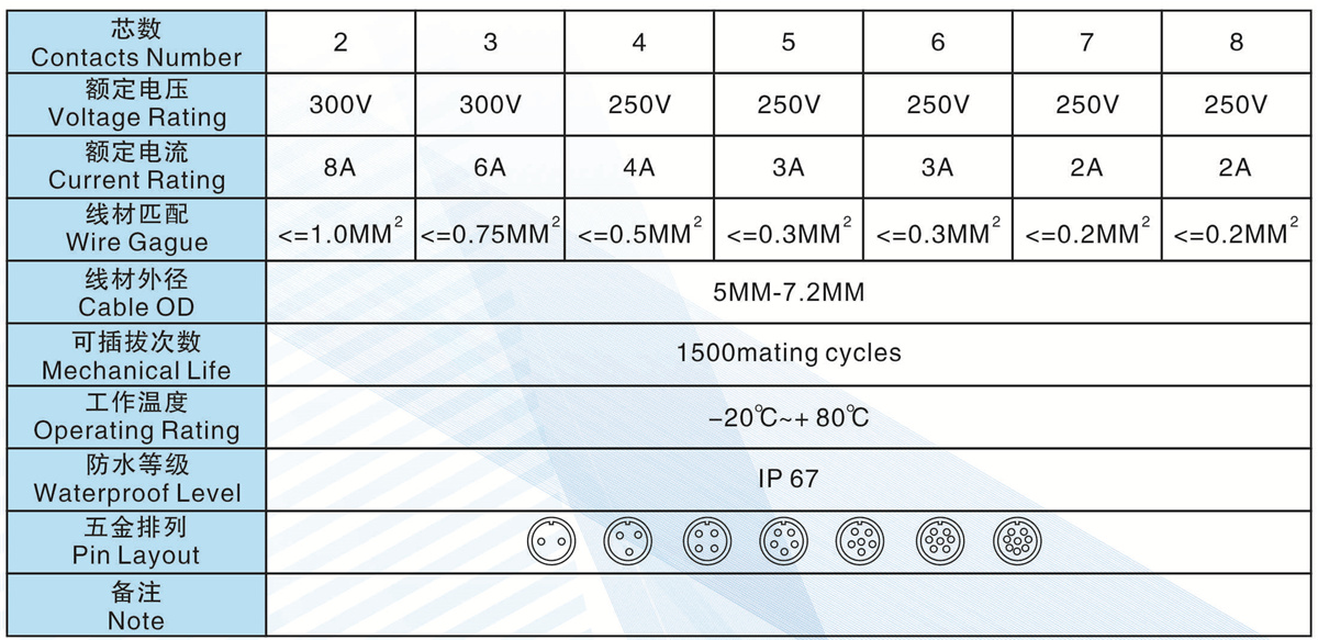 線材匹配(Wire Gague):<=1.0MM2 <=0.75MM2 <=0.5MM2 <=0.3MM2 <=0.3MM2 <=0.2MM2 <=0.2MM2