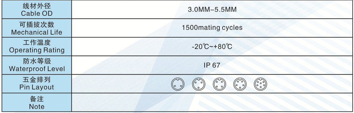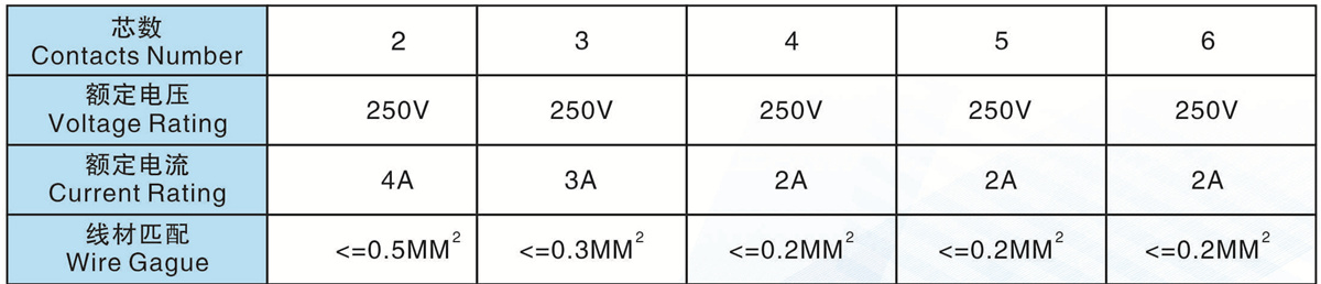 線材匹配(Wire Gague):<=0.5MM2 <=0.3MM2 <=0.2MM2 <=0.2MM2 <=0.2MM2
