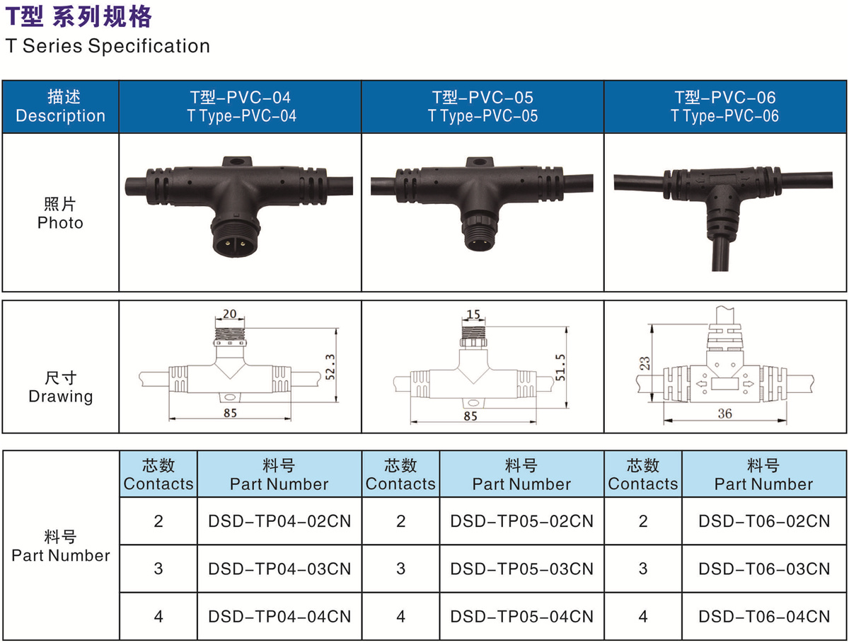 料號(Part Number) : 2芯(DSD-TP05-02CN) 3芯(DSD-TP05-03CN) 4芯(DSD-TP05-04CN)
